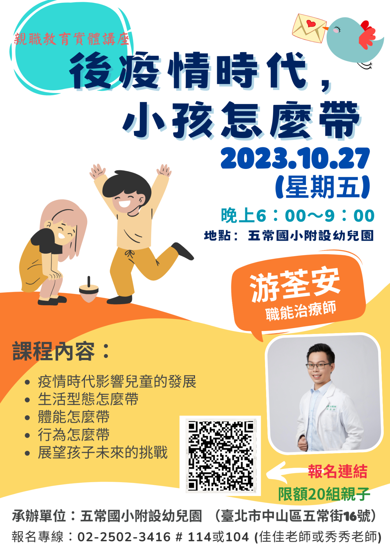 五常國小辦理112學年度幼兒園親職教育講座活動「後疫 情時代,小孩怎麼帶」,歡迎家長及社區民 眾踴躍報名參加!